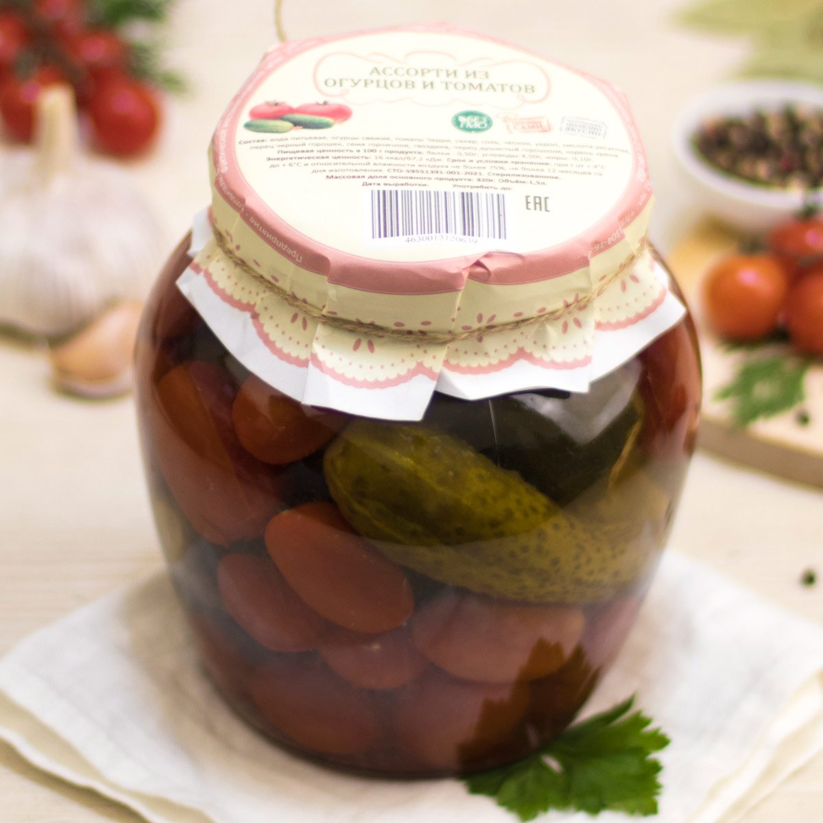 Ассорти огурцы/томаты ст/б 1,5л