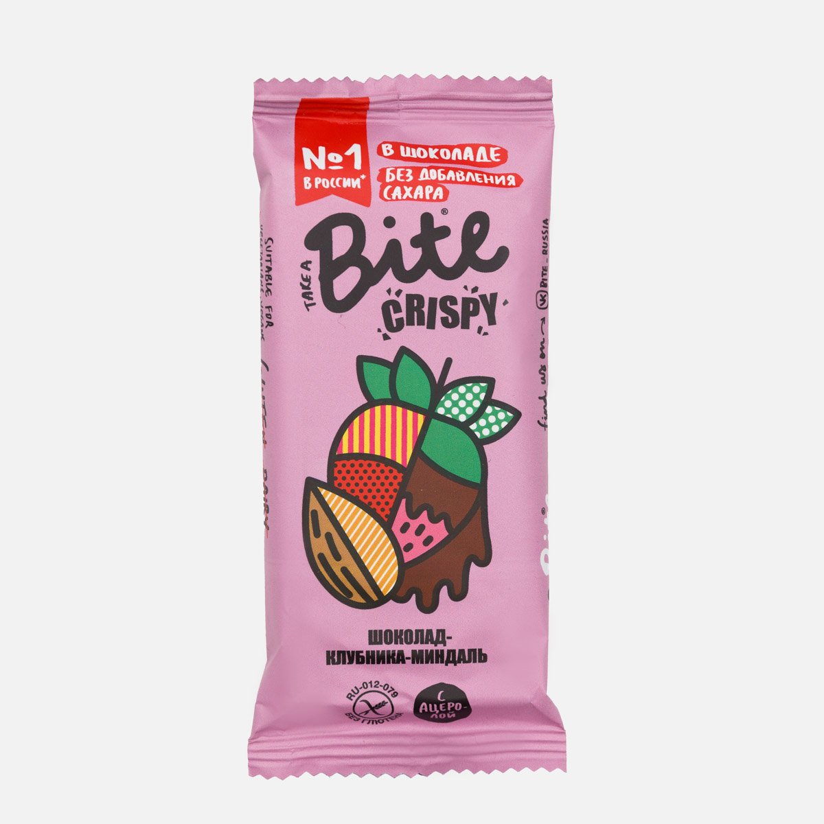 Батончик Бите Криспи веган Шоколад/Клубника/Миндаль 45г