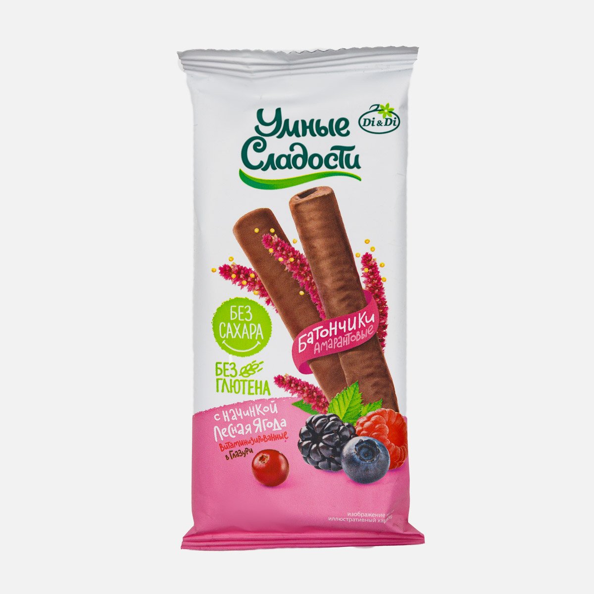 Батончики Умные сладости амарантов Лесн ягода в глазури б/глютена 20г