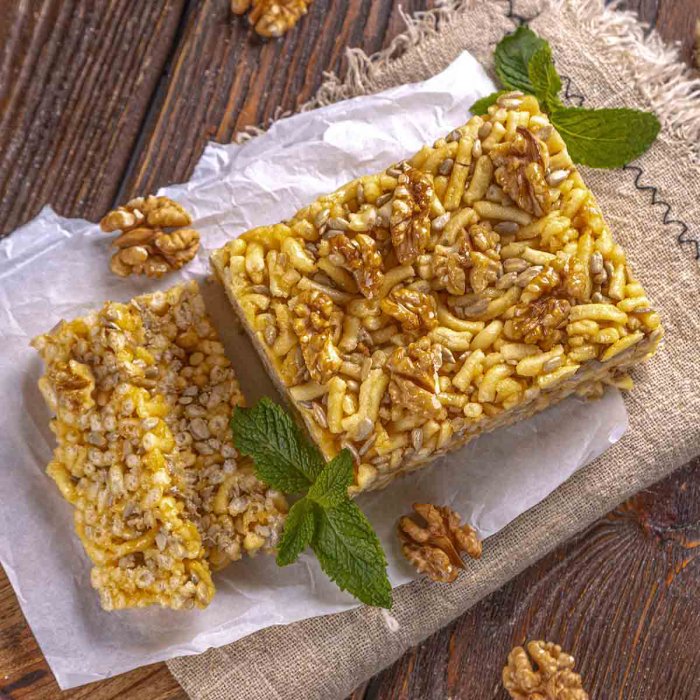 Мука пшеничная в/с, ядро подсолнечника, орех грецкий, яйцо куриное, сахар, мед натуральный, соль поваренная, масло подсолнечное.