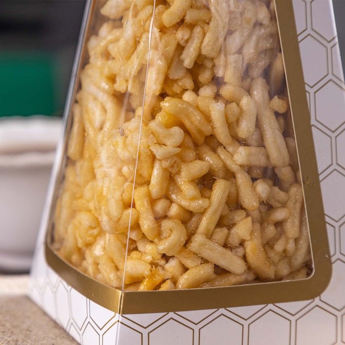 Визитная карточка татарских кондитеров. Неслучайно в Казани даже открыт музей в честь этого национального блюда. Золотистый десерт из обжаренных кусочков теста и меда не просто лакомство, а настоящий символ, тонко вплетенный в традиции гостеприимства и семейных праздников. Каждый крохотный кусочек этого янтарного лакомства манит сладким ароматом, обещая настоящее удовольствие.