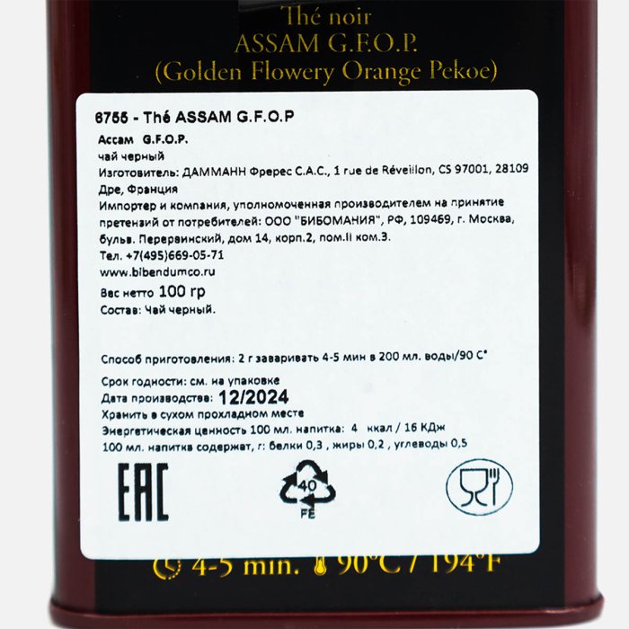 Чай Дамманн Ассам Гфоп Черный Индийский №10 ж/б 100г