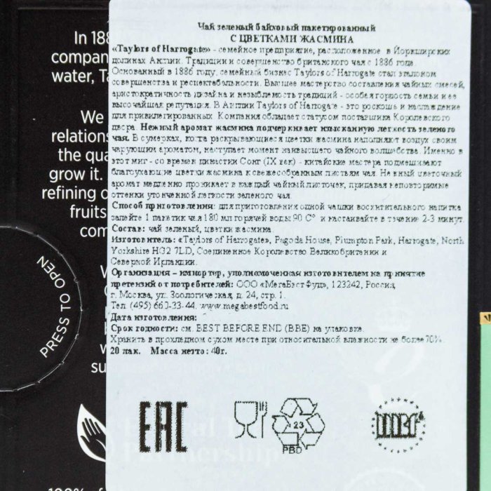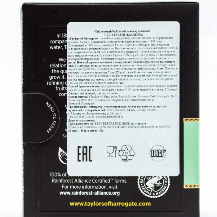 Чай ТэйлорОфХаррогейт зеленый с цветками жасмина 20пак 40г