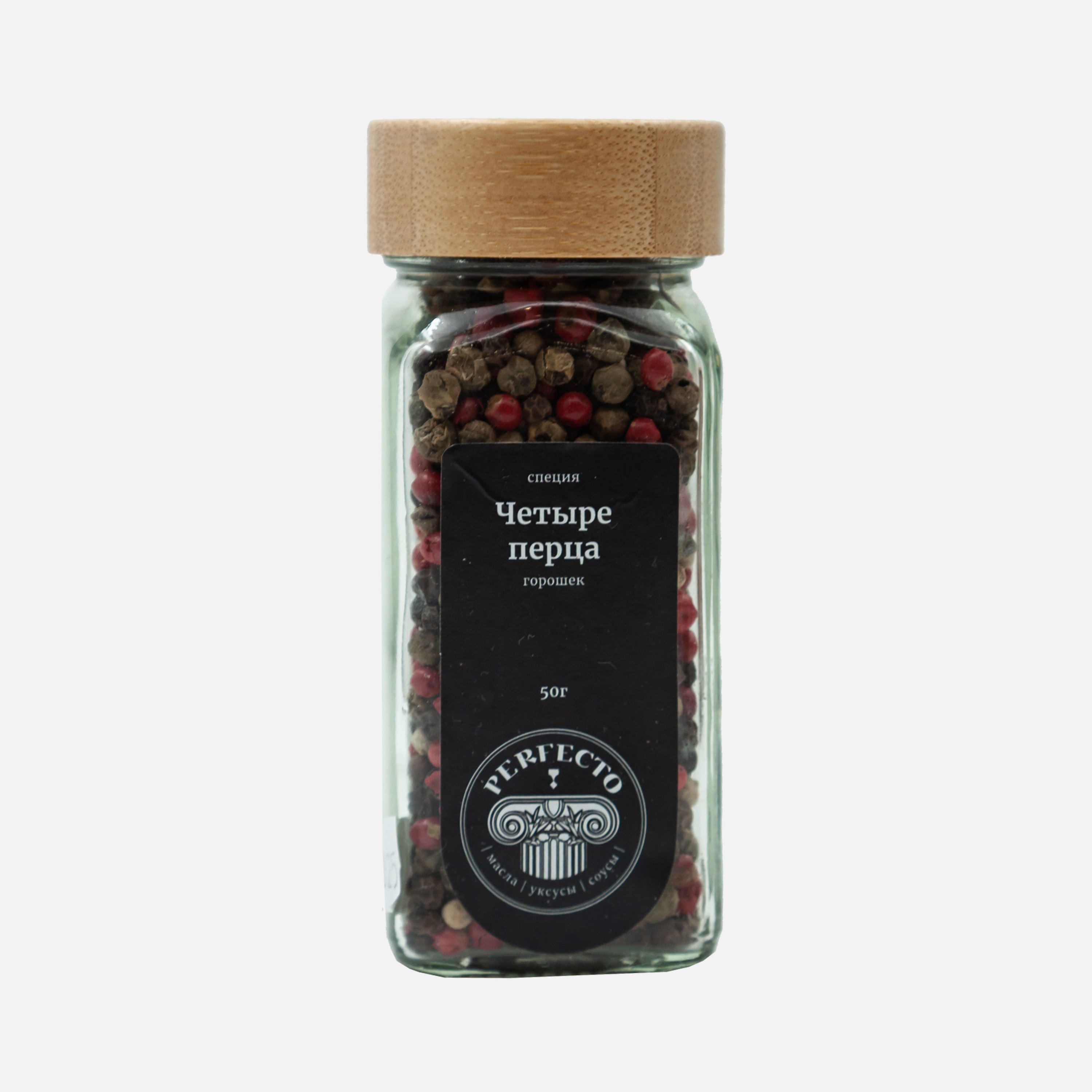 Перец черный, перец белый, перец розовый, перец зеленый.