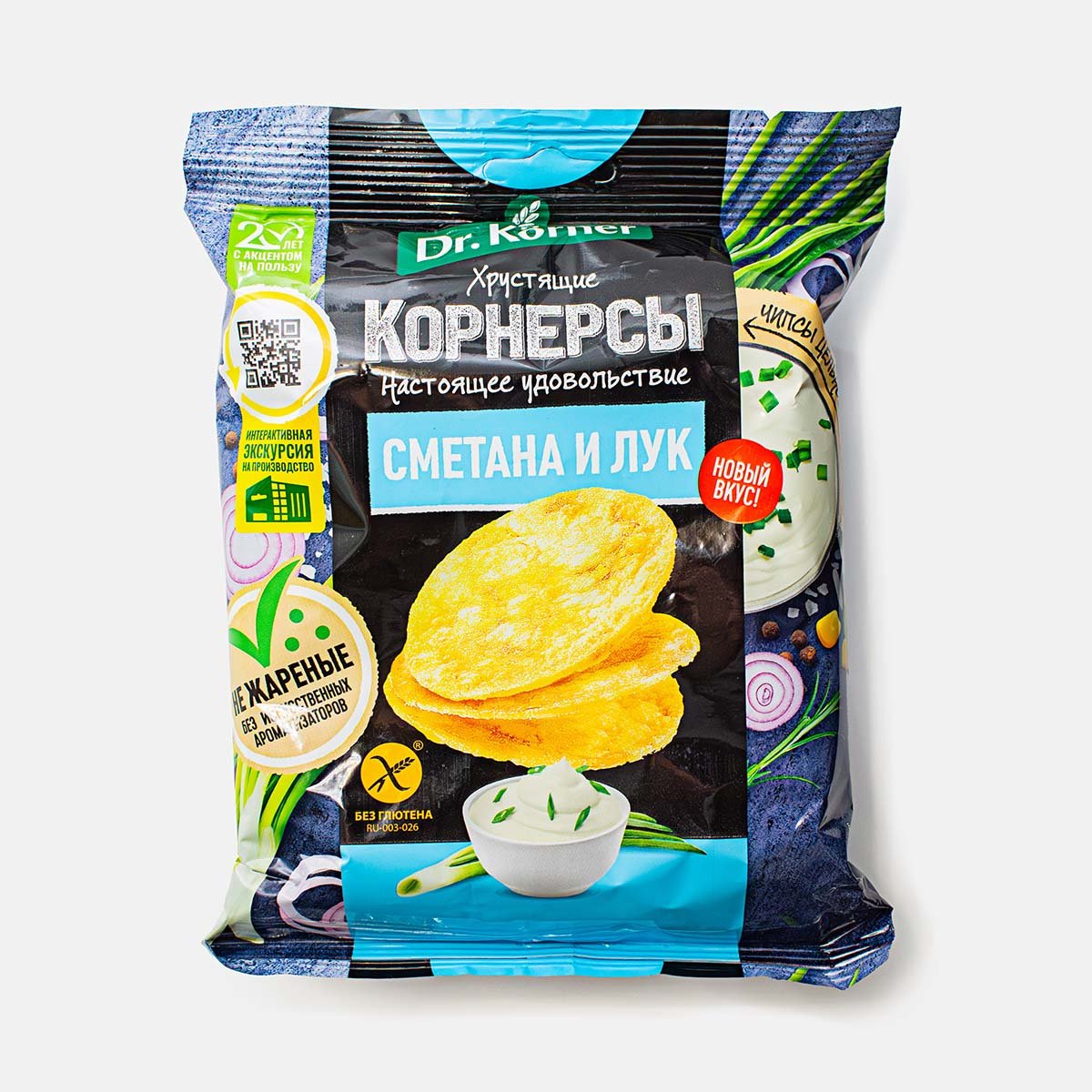 Чипсы Др Корнер Корнерсы кукурузно- рисовые сметана и лук 50г