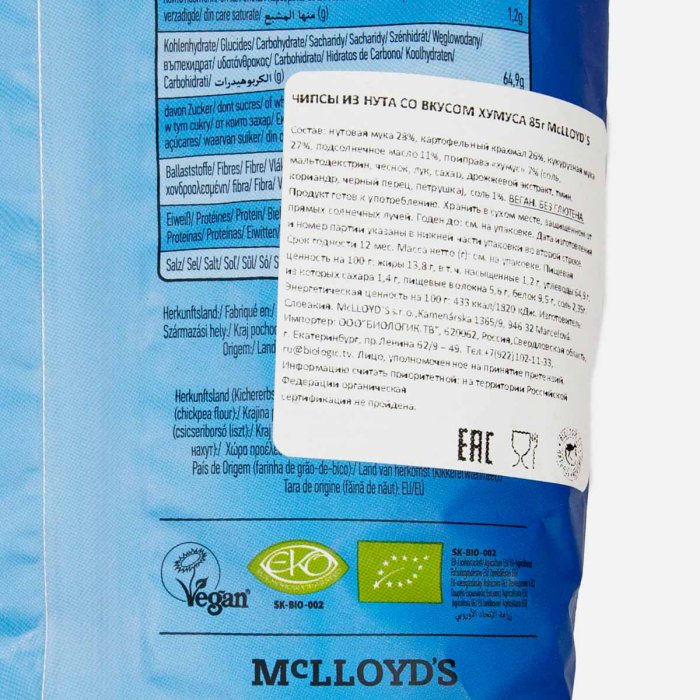 Чипсы МакЛлойдес из нута со вкусом хумуса 85г