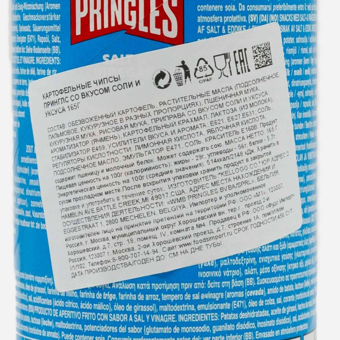 Чипсы Принглс со вкусом соли и уксуса 165г