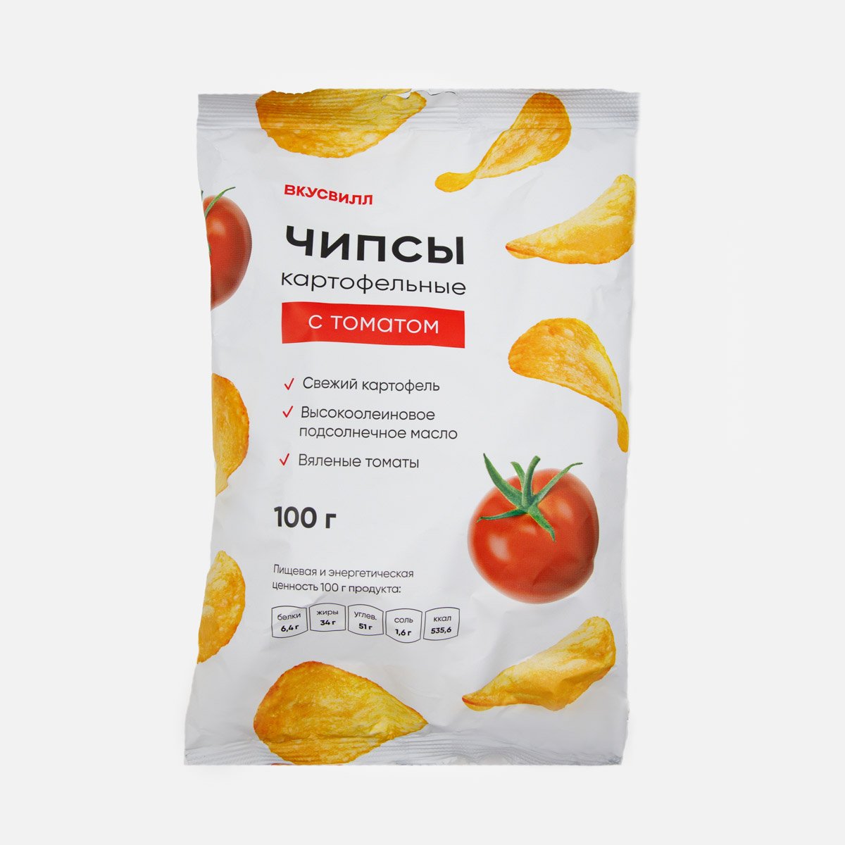 Чипсы Вкусвилл картофельные с томатом 100г