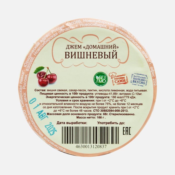 Джем Домашний вишневый ст/б 166г