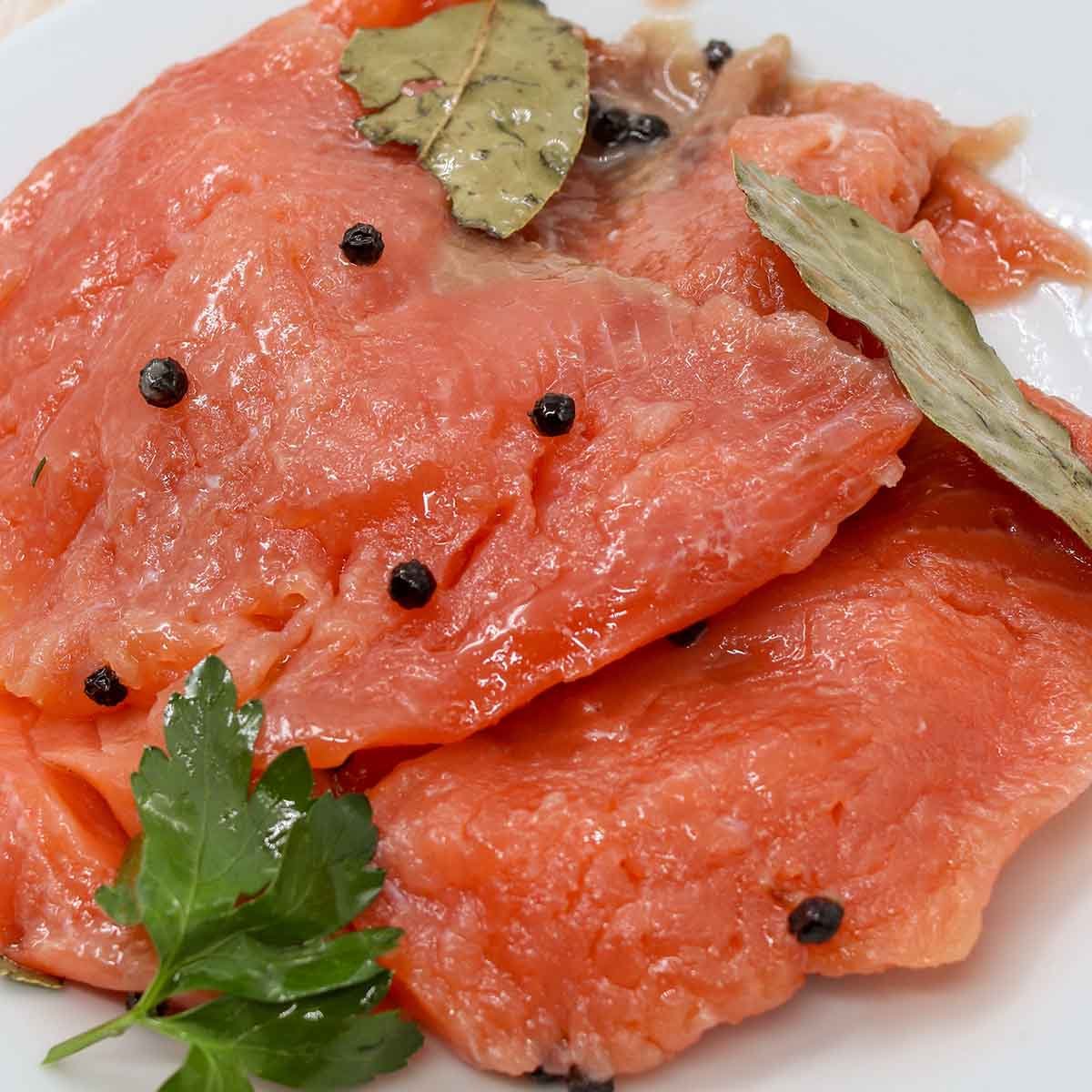 Нежное сладковатое филе морской рыбы в слабой соли. Утонченный деликатес для вашего стола с идеальным свежим вкусом. Легкая и полезная закуска, а также идеальный компаньон для воплощения любого кулинарного каприза. Кета прекрасно подходит для бутербродов, брускетт, тарталеток, выгодно смотрится в салате из свежих овощей. Разнообразьте ваше привычное меню вместе с нами!