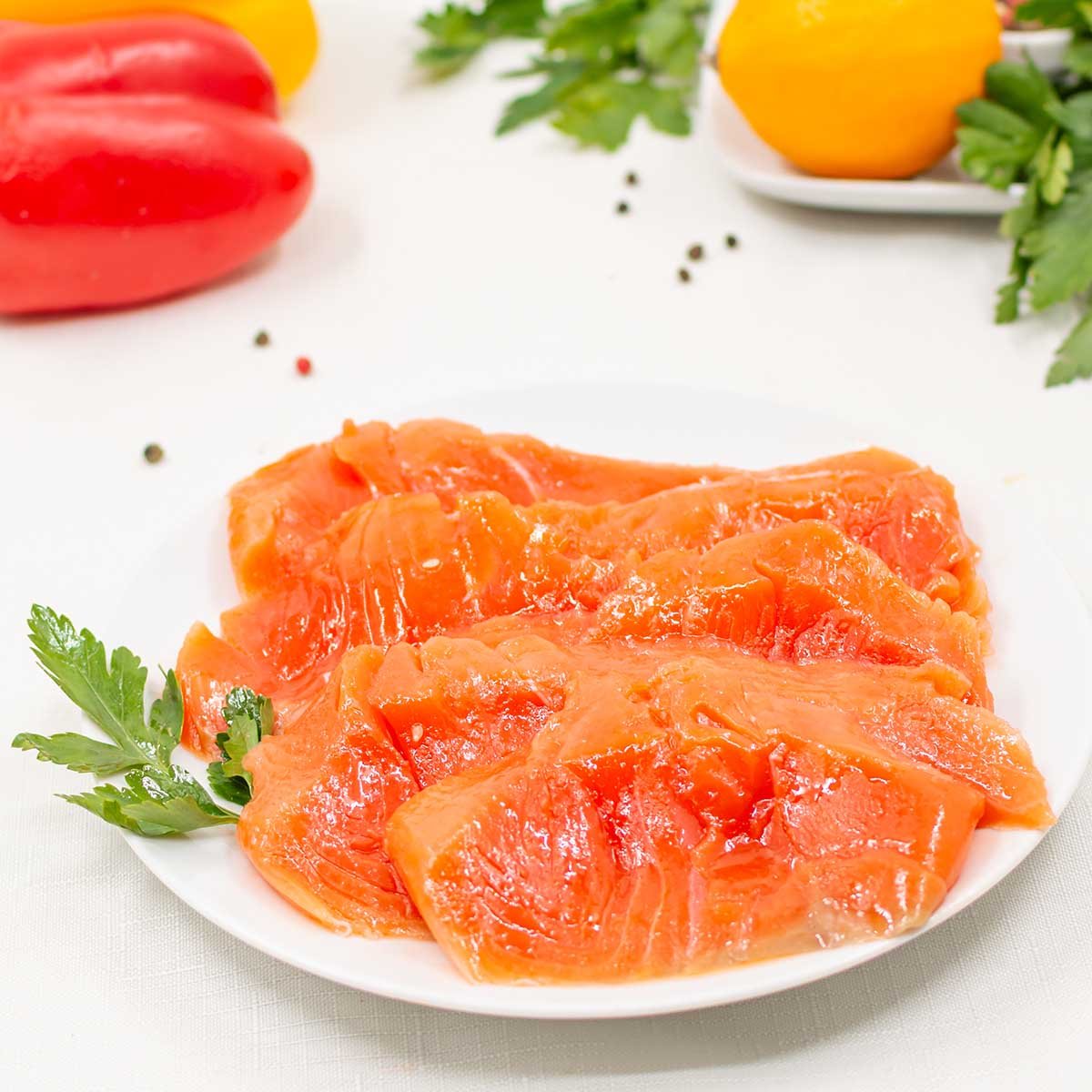 Сочные ломтики дальневосточного кижуча обладают сладковатым маслянистым вкусом. Нежное чуть сладковатое филе красной рыбы – не просто аппетитная закуска, но и ценнейший продукт для тех, кто следит за своим здоровьем. Морской деликатес богат витаминами, минералами и жирными кислотами Омега-3. Непременно включите сочного кижуча в свой повседневный рацион.