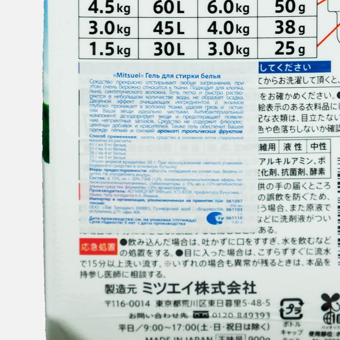 Гель д/стирки Митсуи с ароматом тропических фруктов 900г