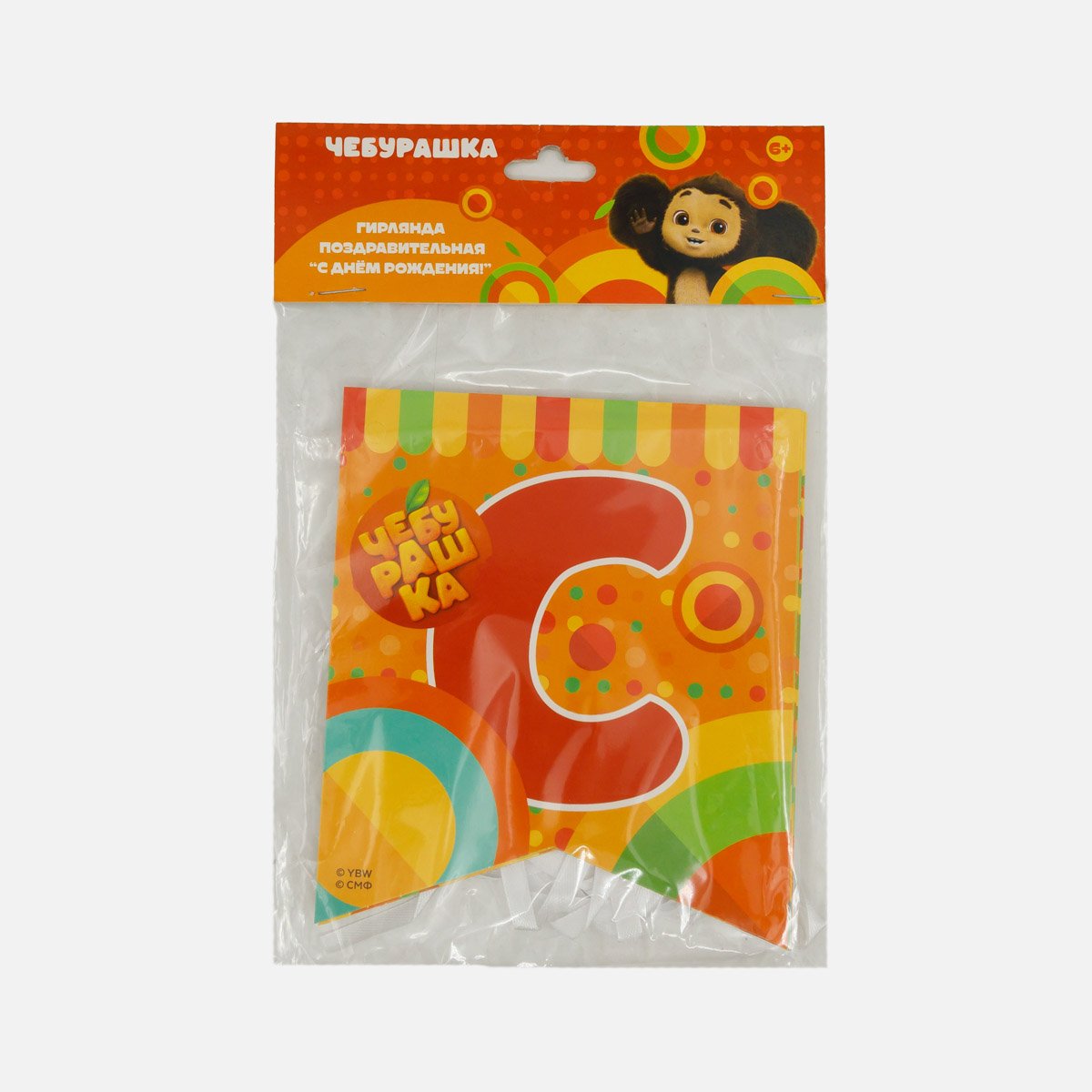 Гирлянда поздр Чебурашка С Днем рождения обычная бум 20,5*0,5*15см