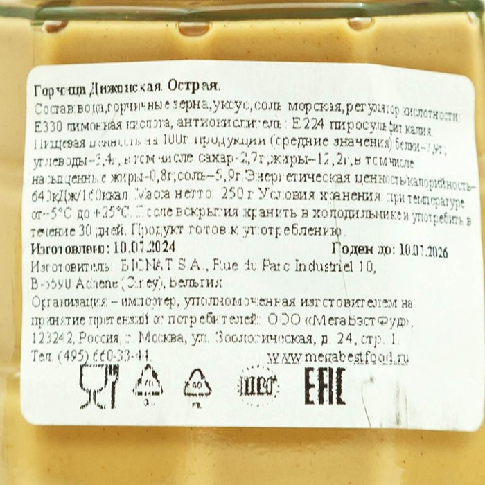 Горчица Бистер Дижонская острая ст/б 250г