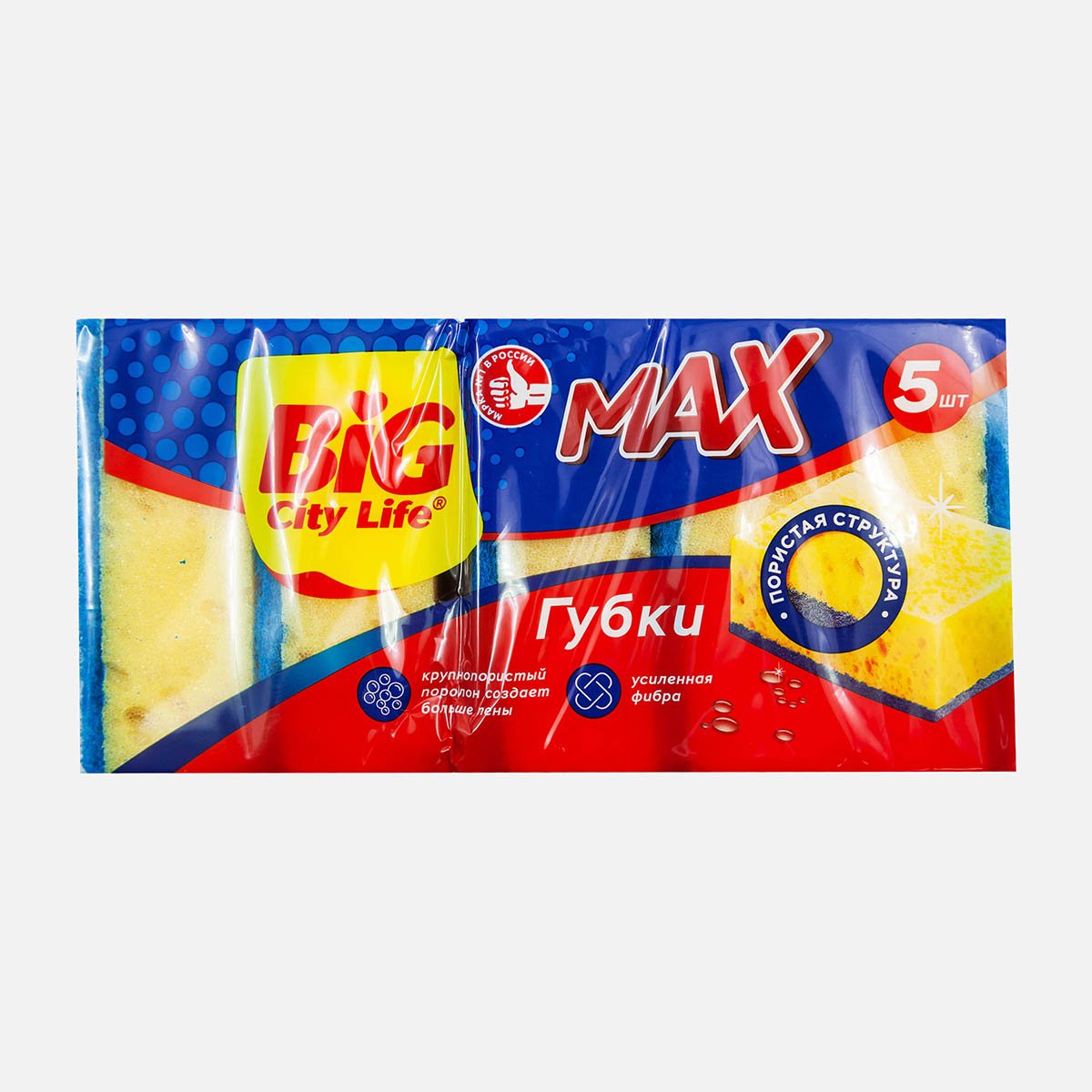 Губки Биг Сити кухонные крупнопорис Макс 5шт пенополиур 18см
