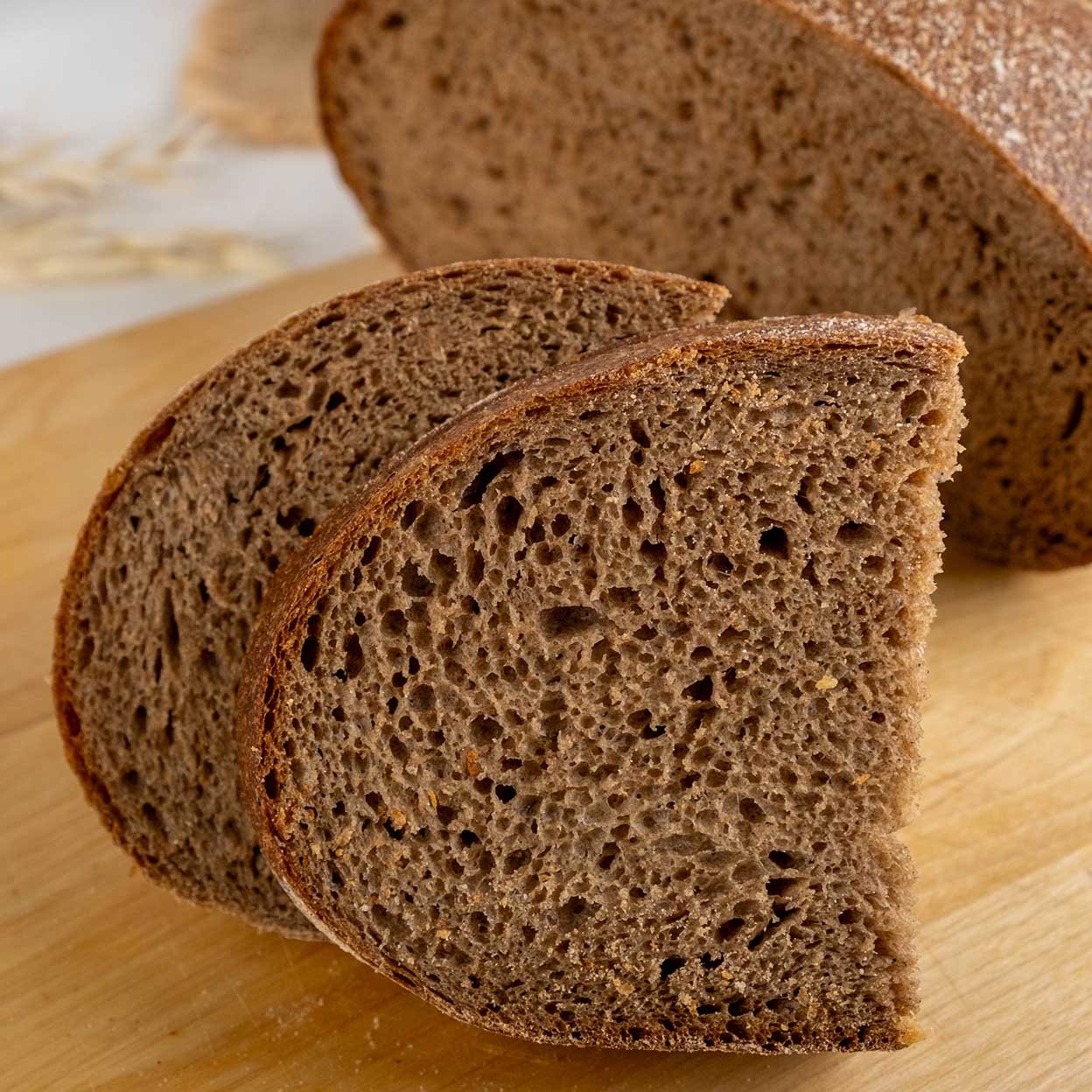 Этот хлеб выпекают из смеси пшеничной и обдирной ржаной муки, поэтому у него особый насыщенный аромат, хрустящая корочка и плотный влажный мякиш. Этот традиционный вариант приготовления, который широко использовался еще с древних времен, до сих пор не теряется своей актуальности. Именно в бездрожжевом хлебе сохраняется больше полезных веществ и микроэлементов, а его выраженный неповторимый вкус невозможно перепутать ни с одним другим хлебобулочным изделием.