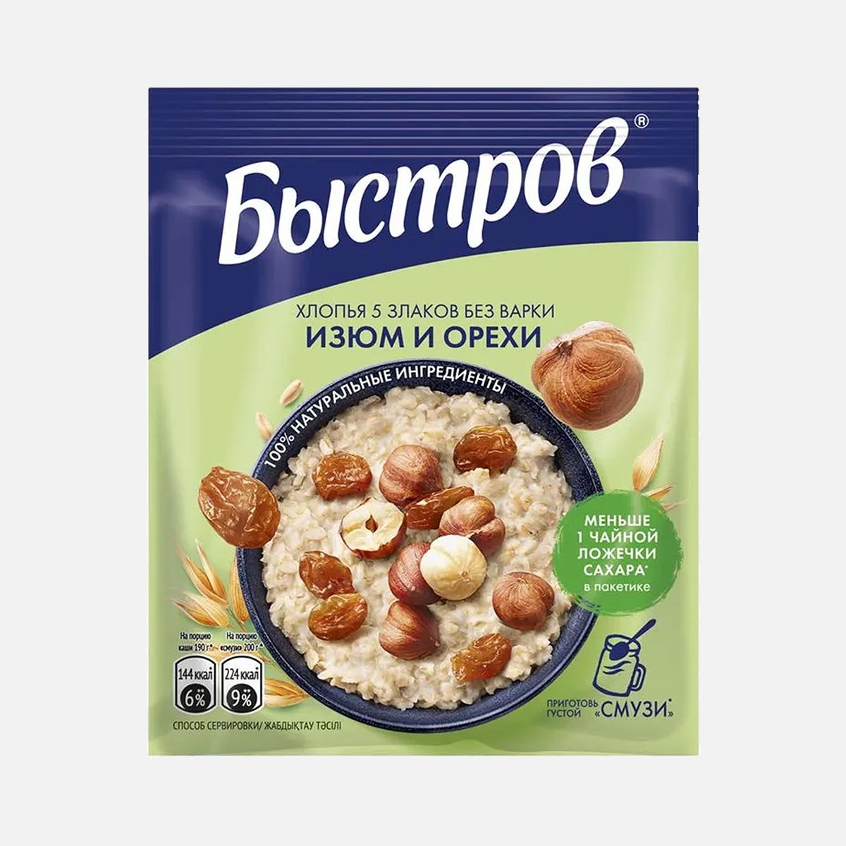 Хлопья Быстров 5 злаков Изюм/орех без варки пл/пак 40г