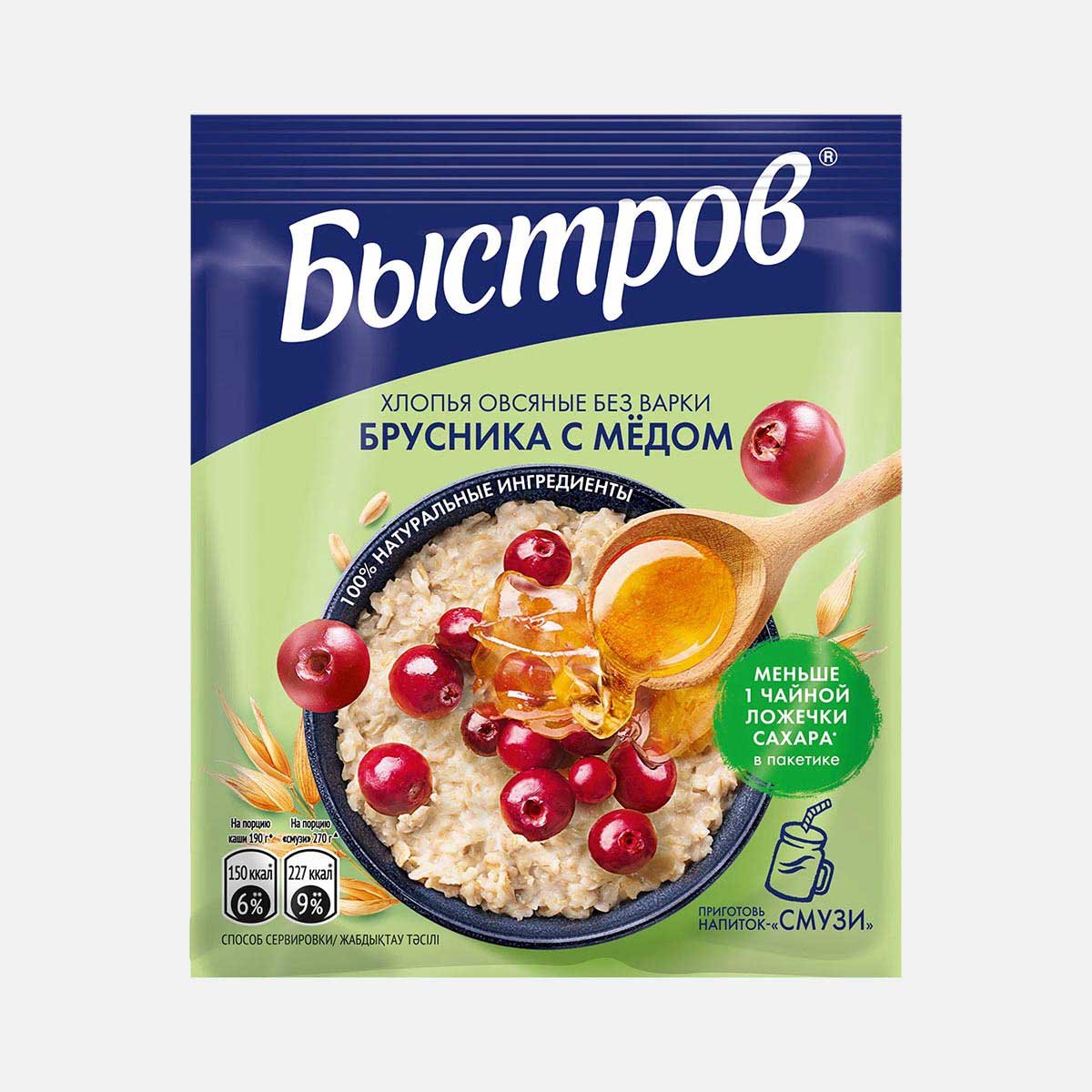 Хлопья Быстров овсяные Брусника с медом без варки 40г