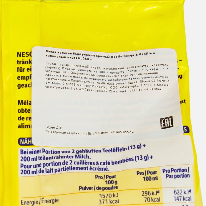 Какао-напиток Несквик с ванильным вкусом 350г