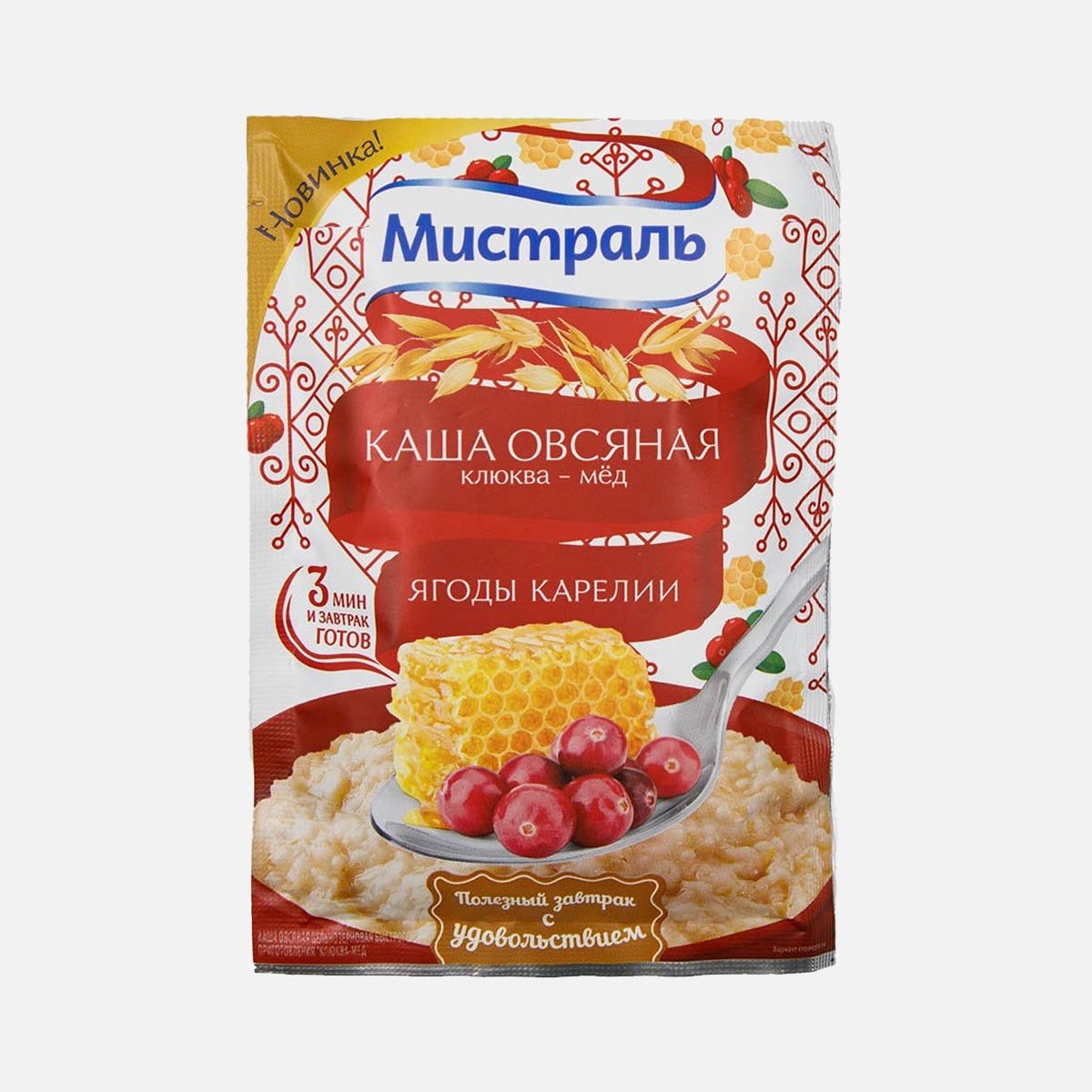 Каша Мистраль овсяная клюква-мед Ягоды Карелии цельнозерн пл/уп 40г