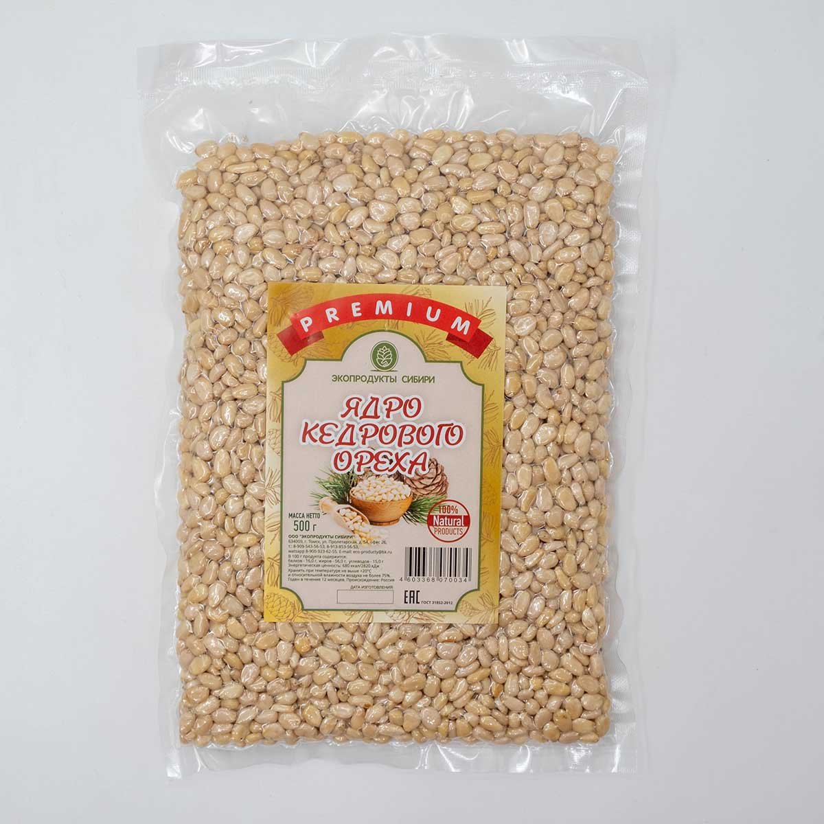 Кедровый орех очищенный Премиум 500г Экопродукты Сибири