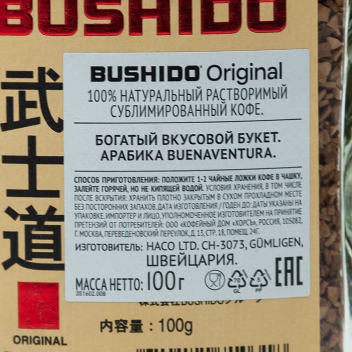 Кофе Бушидо Ориджинал сублимир ст/б 100г