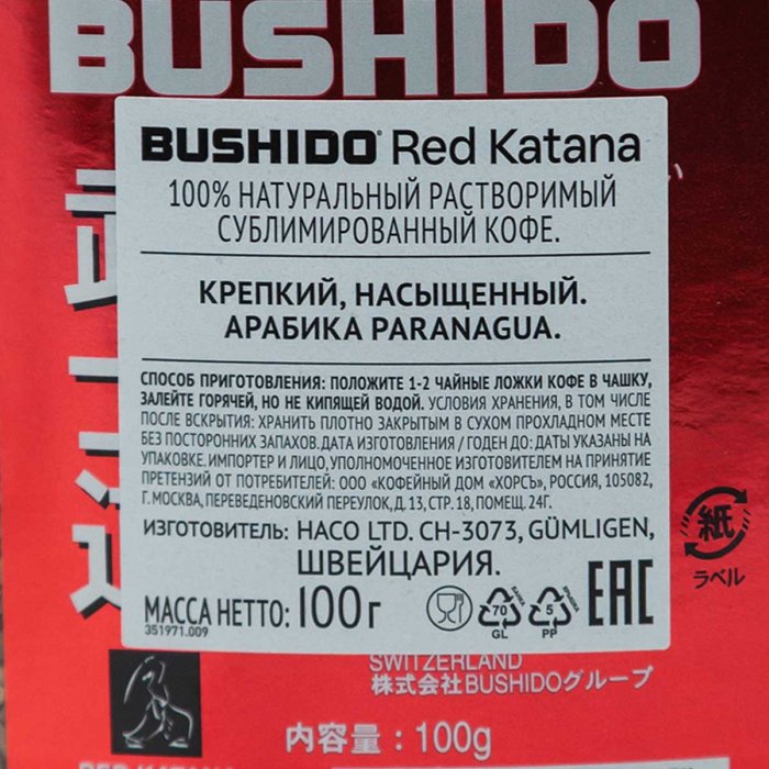 Кофе Бушидо Ред 100г