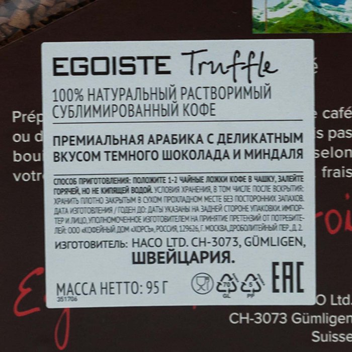 Кофе Эгоист Трюфель раст ст/б 95г