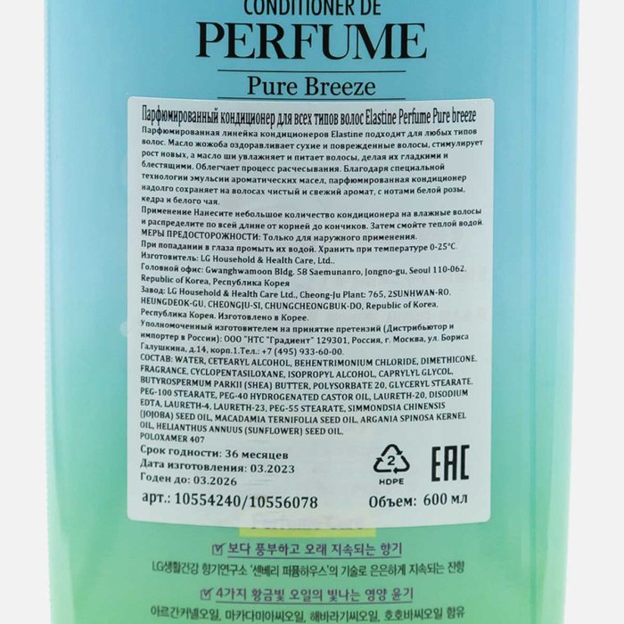 Кондиционер Эластин Парфюм Пюр Бриз д/всех типов волос 600мл
