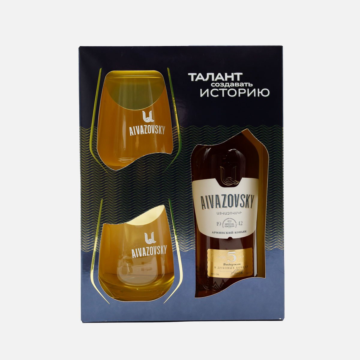 Коньяк Айвазовский Армянский ордин пятилетний 40% п/у 0,5л+ 2бокала