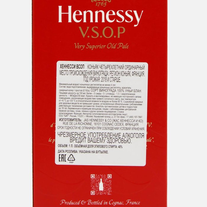 Коньяк Хеннесси VSОР четырехлетний орд 40% п/у 1л