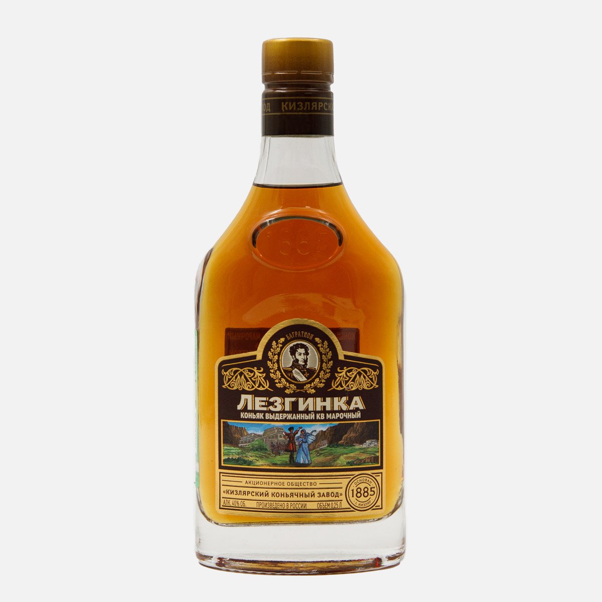 Коньяк Кизлярский Лезгинка КВ выдер мароч 40% с/б/фляжка 0,25л