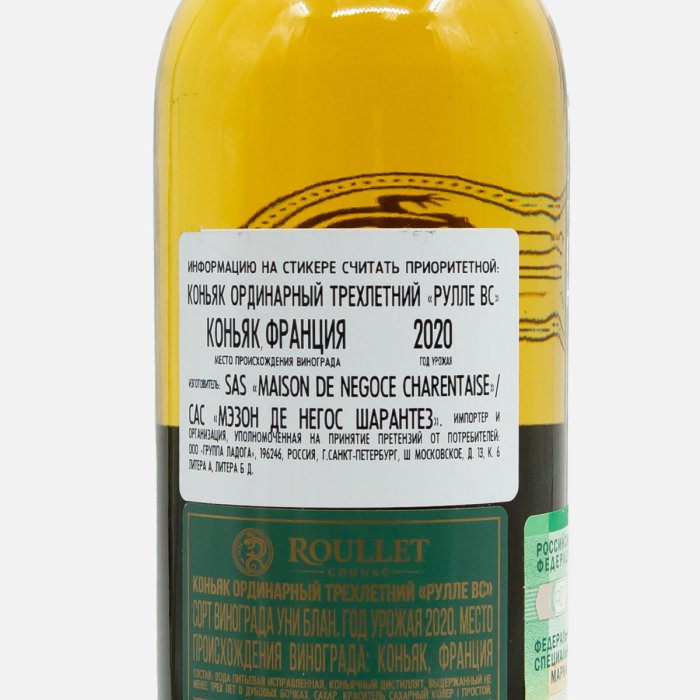 Коньяк Рулле ВС ординарный трехлетний 40% ст/б 0,5л