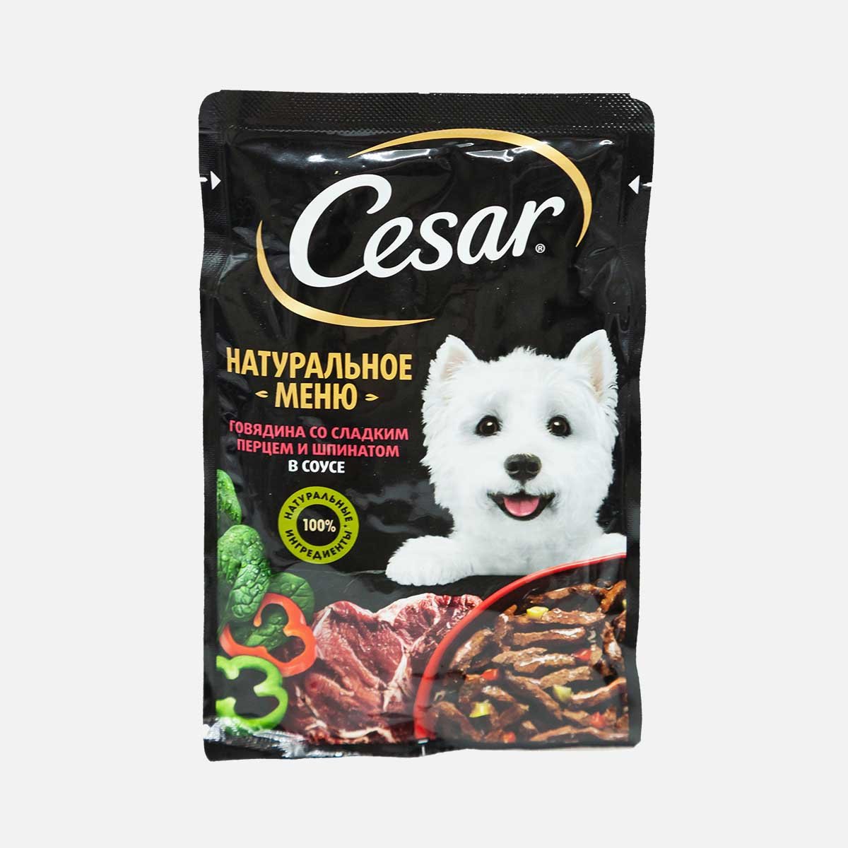 Корм Цезарь Говядина/сладкий перец/шпинат в соусе пауч 80г