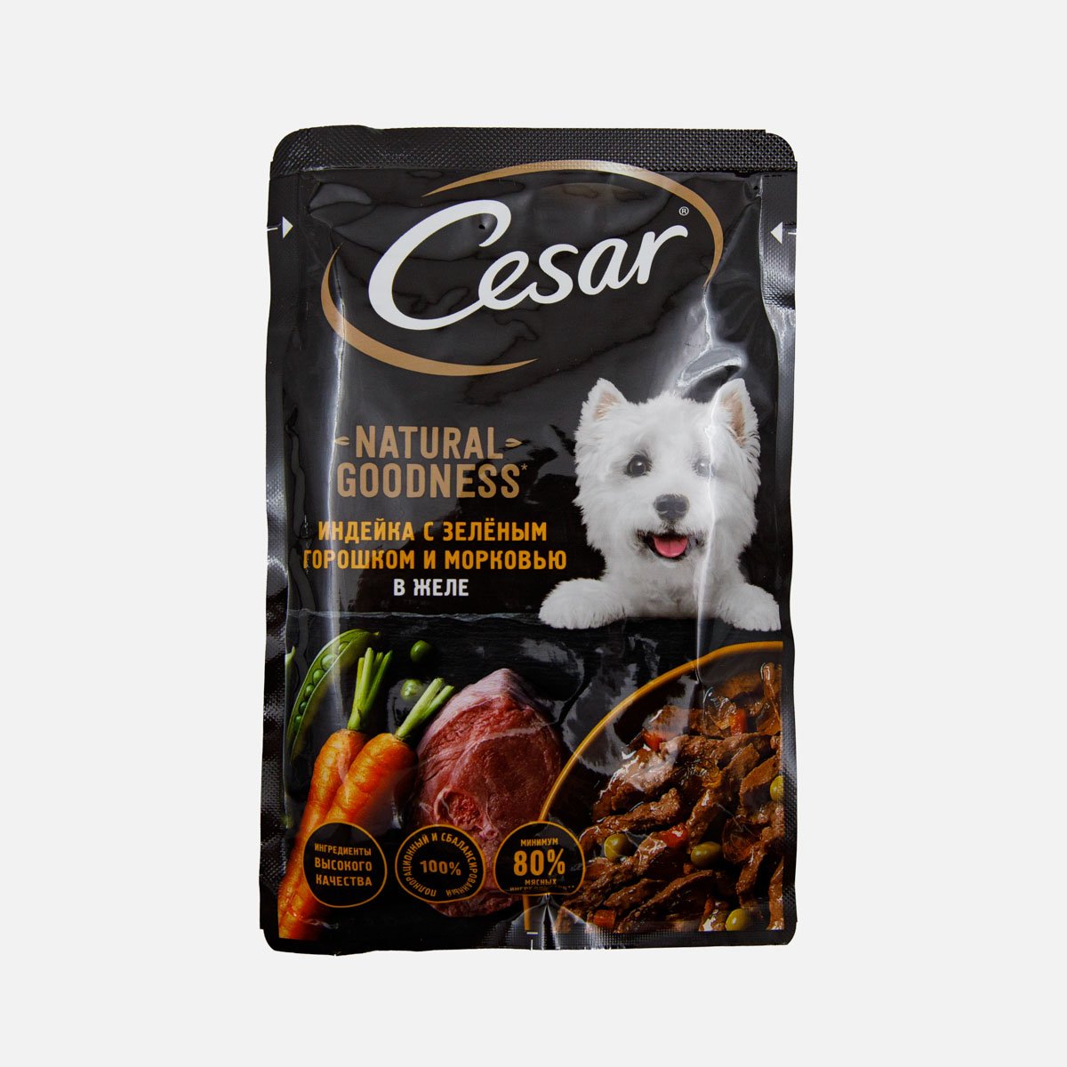 Корм Цезарь Индейка/зел горошек и морковь в желе пауч 80г