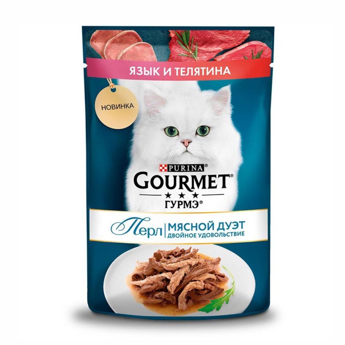 Корм Гурмэ Перл Мясной дуэт Язык/телятина в соусе пауч 75г