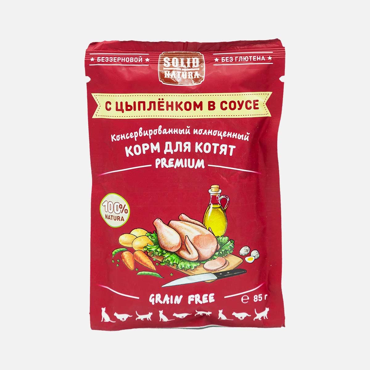Корм Солид Натура Премиум Цыплёнок в соусе пауч 85г