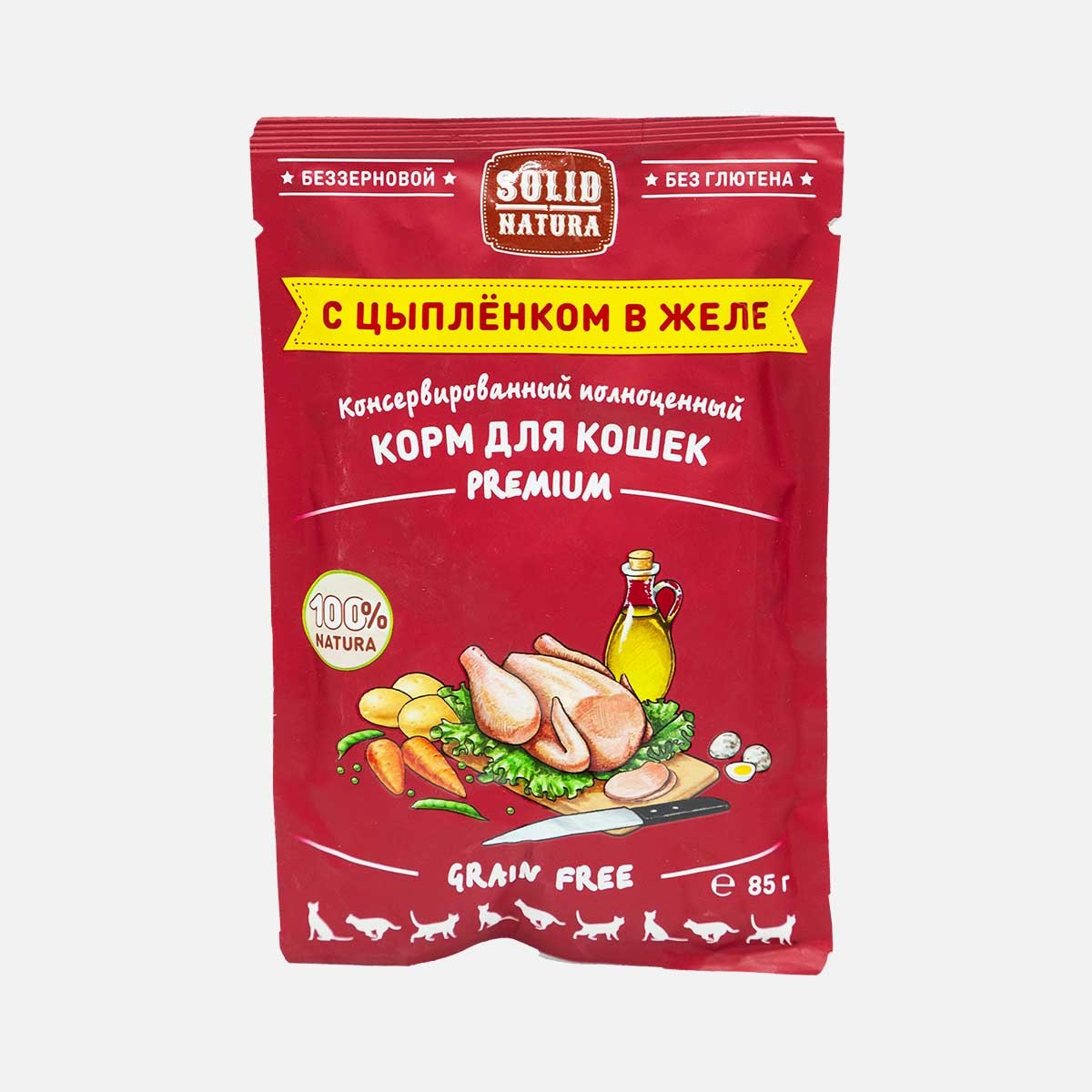 Корм Солид Натура Премиум Цыплёнок в желе пауч 85г