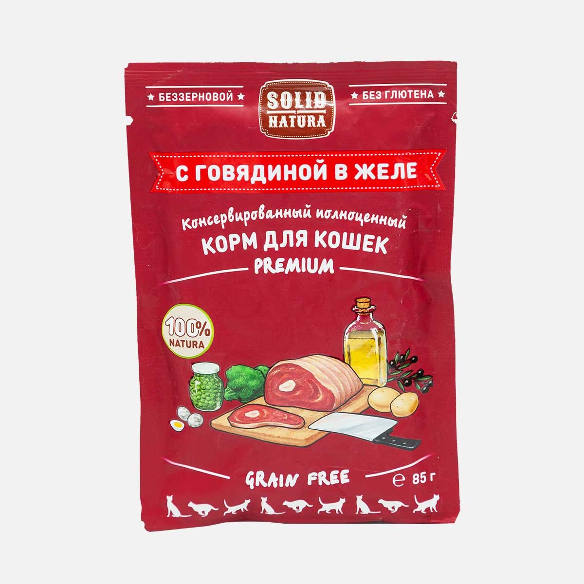Корм Солид Натура Премиум Говядина в желе пауч 85г