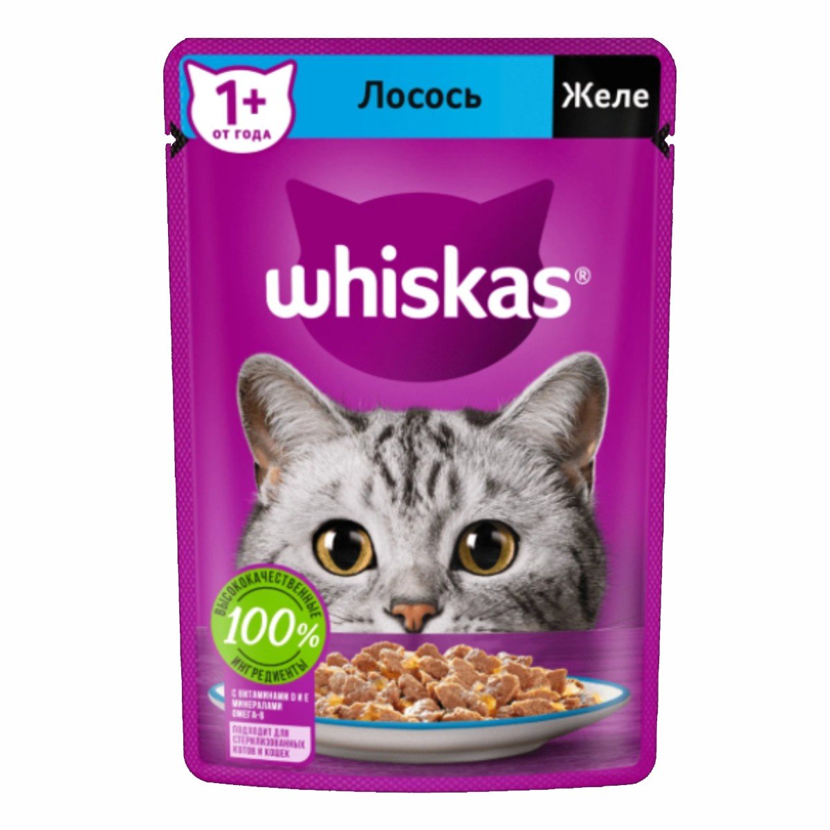 Корм Вискас Лосось желе пауч 75г