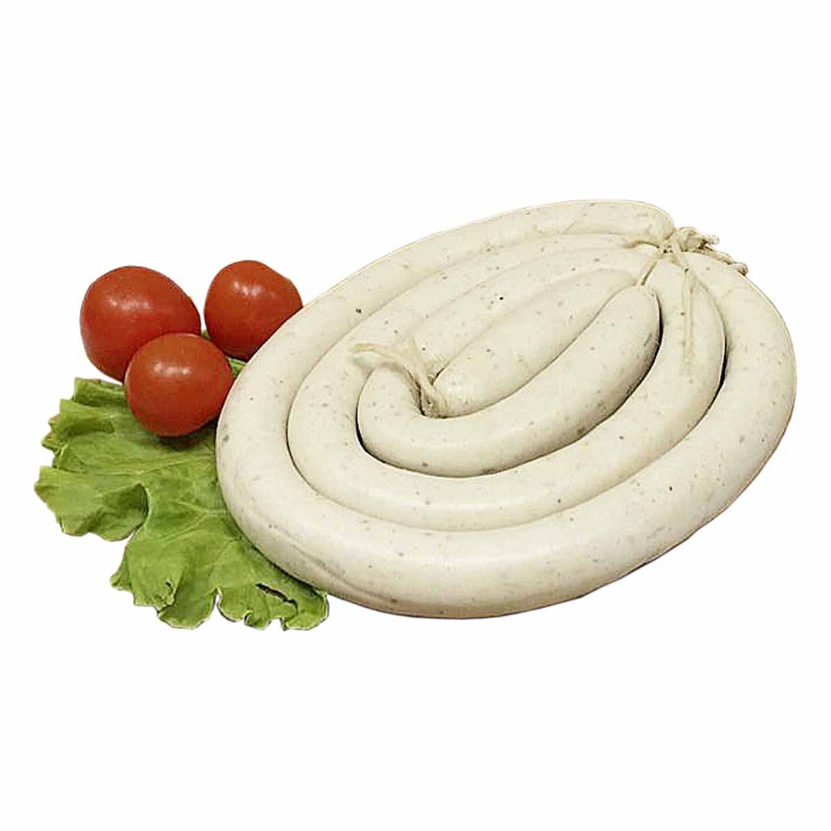 Свинина, филе кур, шпик, вода, молоко сухое, соль, смесь специй и пряностей (чеснок, мускат, перец черный молотый, кориандр), петрушка.