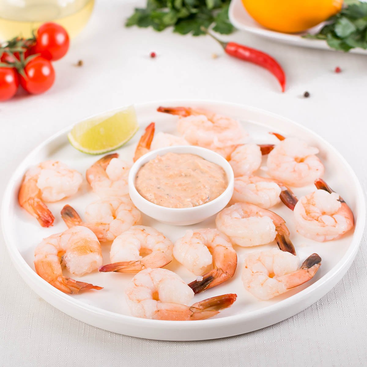 Неповторимый свежий вкус моря идеально воплощен в тигровых креветках. Сочные и упругие с нежным, но фактурным мясом. Закуска подается с классическим соусом «1000 островов», который гармонично дополняет деликатес, за счет сбалансированного сочетания: майонеза, кетчупа, хрена, маринованного перца, свежих огурцов, лайма и специй. Сочное и изысканное блюдо идеально дополнит любой праздничный ужин.