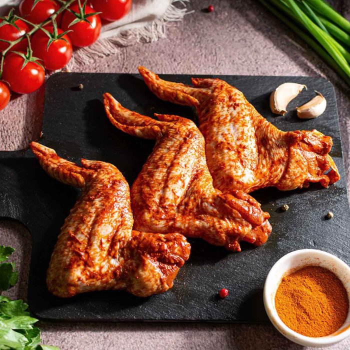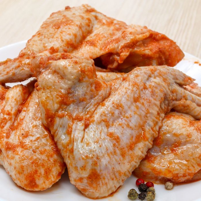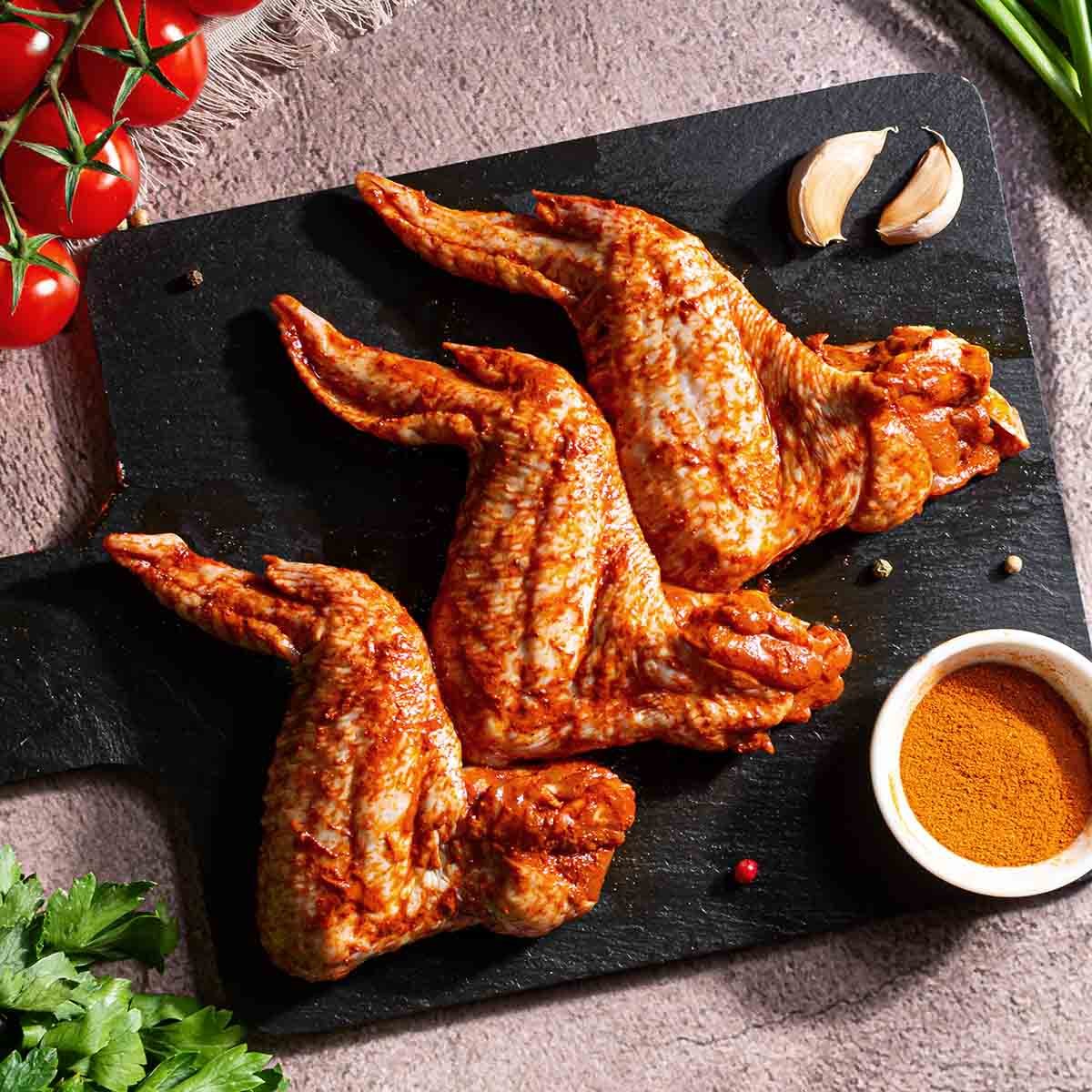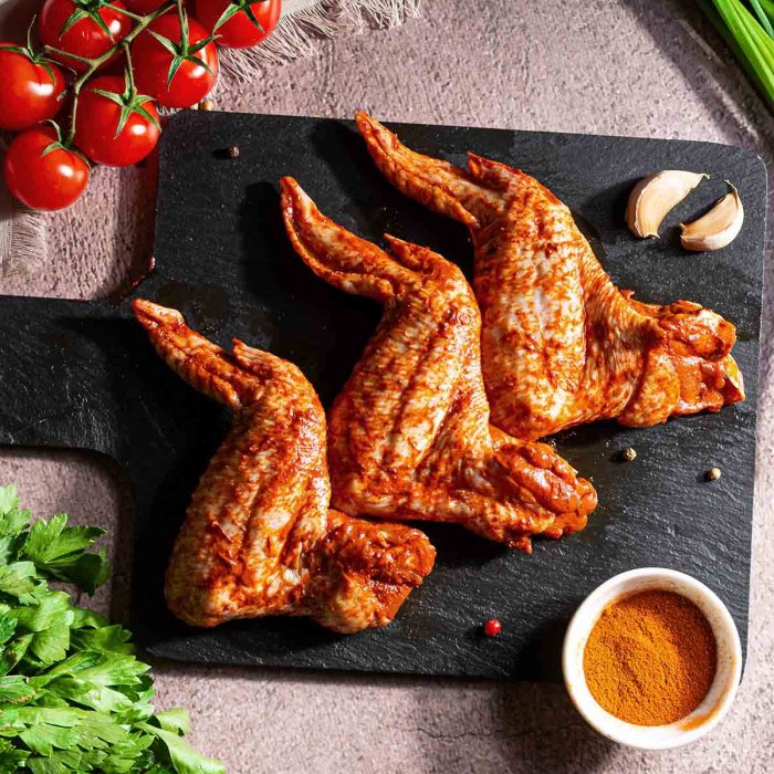 Крылышки куриные, масло подсолнечное, паприка молотая, чеснок сушеный, соль пищевая.