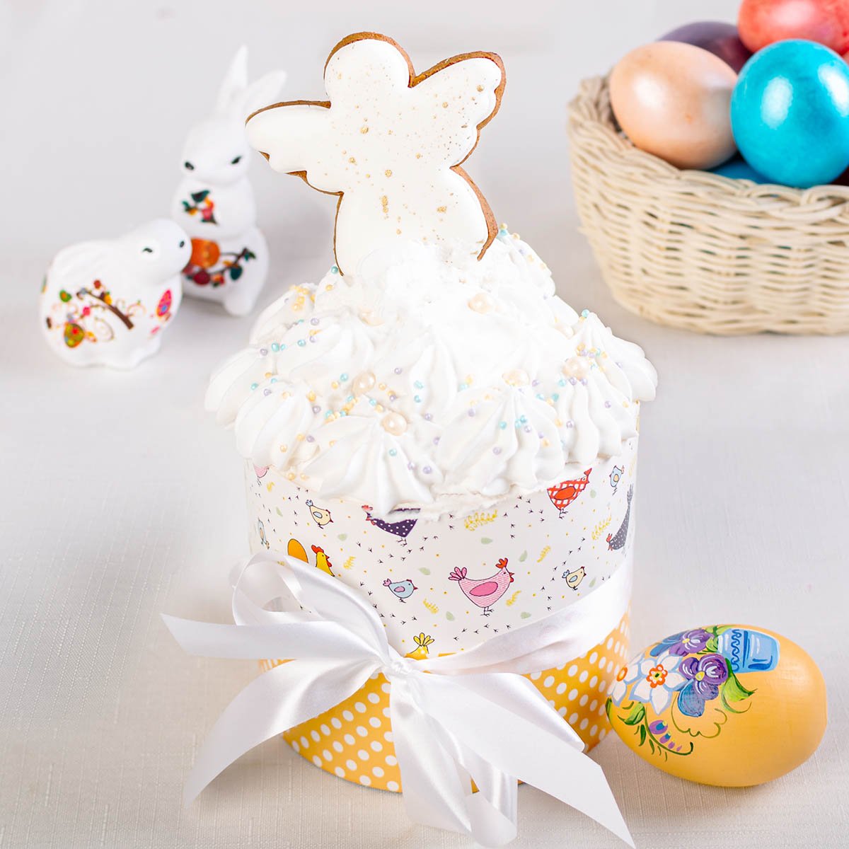 (При изготовлении в изделии из пряника используются шпажки деревянные). Яйцо куриное, масло подсолнечное, смесь кондитерская, сахар-песок, мука пшеничная в/с, изюм, помадка айсинг белая, пудра сахарная, пряник (мука ржаная обойная, ванилин, лимонная кислота, соль, корица, гвоздика, перец душистый, корень имбиря), посыпка сахарная, краситель пищевой, водка, краситель кандурин. Возможно содержание других орехов