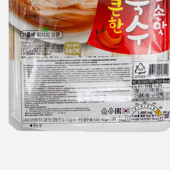 Лапша Баекже Рисовая с острым вкусом б/п 92г