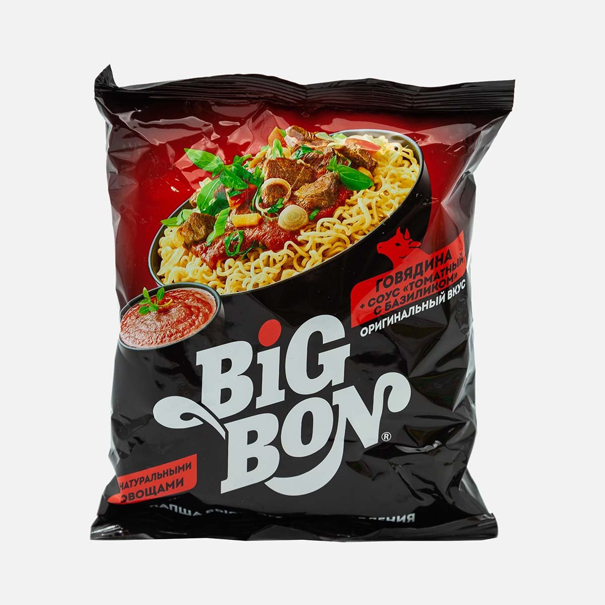 Лапша БигБон Говядина + соус томатный с базиликом пл/уп 75г