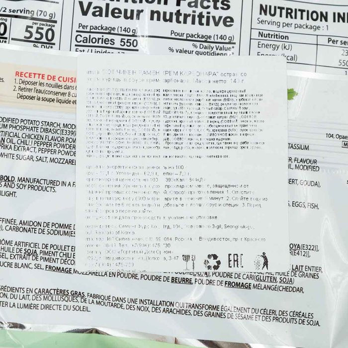 Лапша Самянг со вкусом жгучей курицы карбонара острый вкус 140г