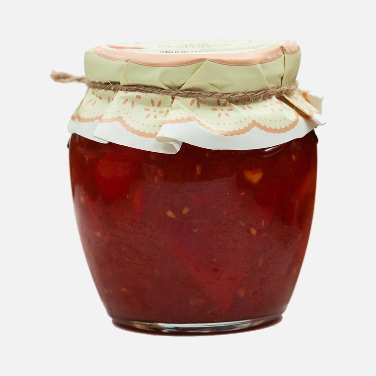 Томаты свежие, перец болгарский цветной, чеснок, петрушка свежая (зелень), соль поваренная пищевая, сахар-песок, масло растительное, перец жгучий (стручок), уксусная кислота.