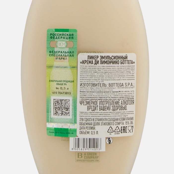 Ликер Боттега Крема Ди Лимончино эмульсионный 15% ст/б 0,5л