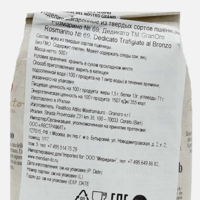 Мак. изд. Граноро Дедикато №69 Розмарино 500г